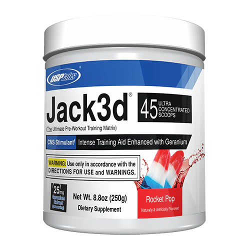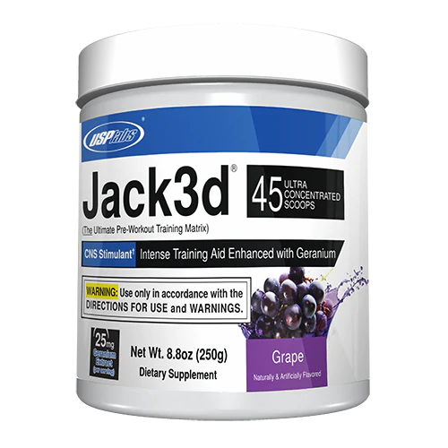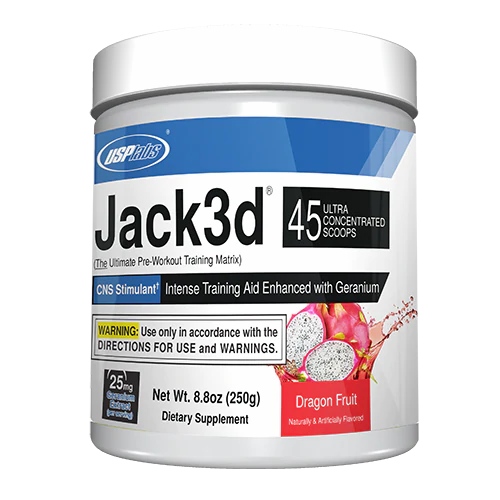 We know finding the perfect preworkout is hard. USPLabs™ knows this better than anyone. Don't waste your money again on a pre-workout that doesn't deliver. Introducing USPLabs™ Jack3d™! Accept no imitators. Jack3d™ is an intense powder pre-workout by USPLabs™ for hardcore workouts. In other words it's an intense training aid enhanced made with Geranium extract. Make no mistake about it, you're going to have to train hard. You're going to have to grind and battle for every rep on every set during every workout, but the revolutionary pre-workout Jack3d™ will get the results you are looking for.
