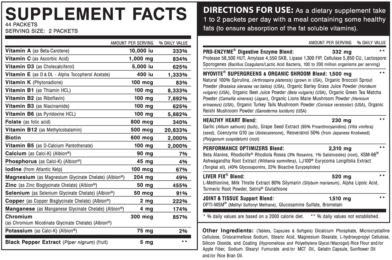MYOVITE® was formulated for athletes and health enthusiasts to help eliminate nutritional gaps in their diet and supplement regimen.† More than just a MultiVitamin MultiMineral formula, MYOVITE® comes complete with Performance Optimizers, Joint Support, Liver Support, Cardiovascular Support, Organic Green Food Nutrients, Digestive Enzymes, Probiotics, and more.†